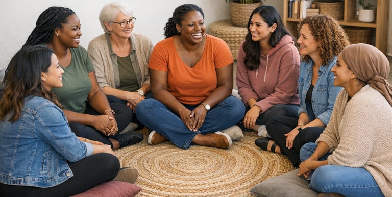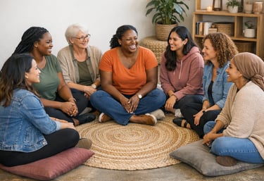 Peer-led group spaces where women can safely share experiences, process trauma, and rebuild trust in community.